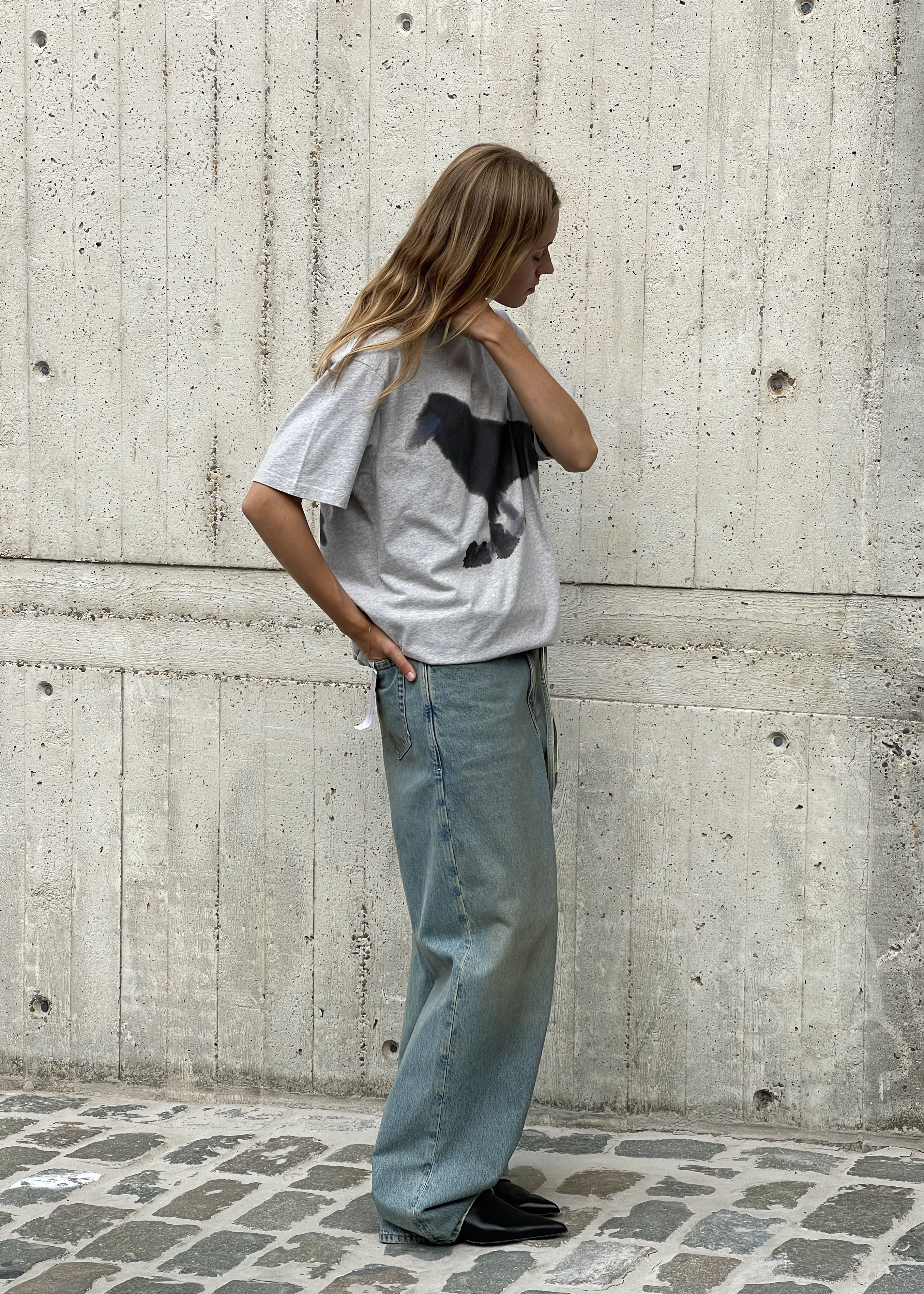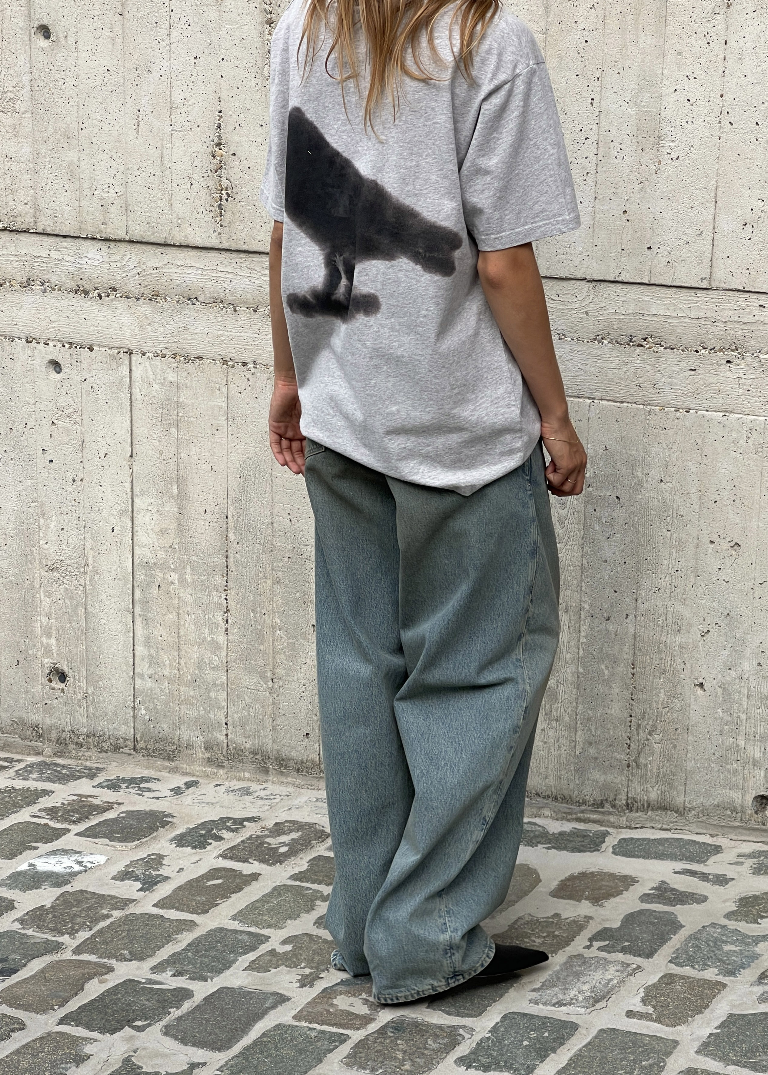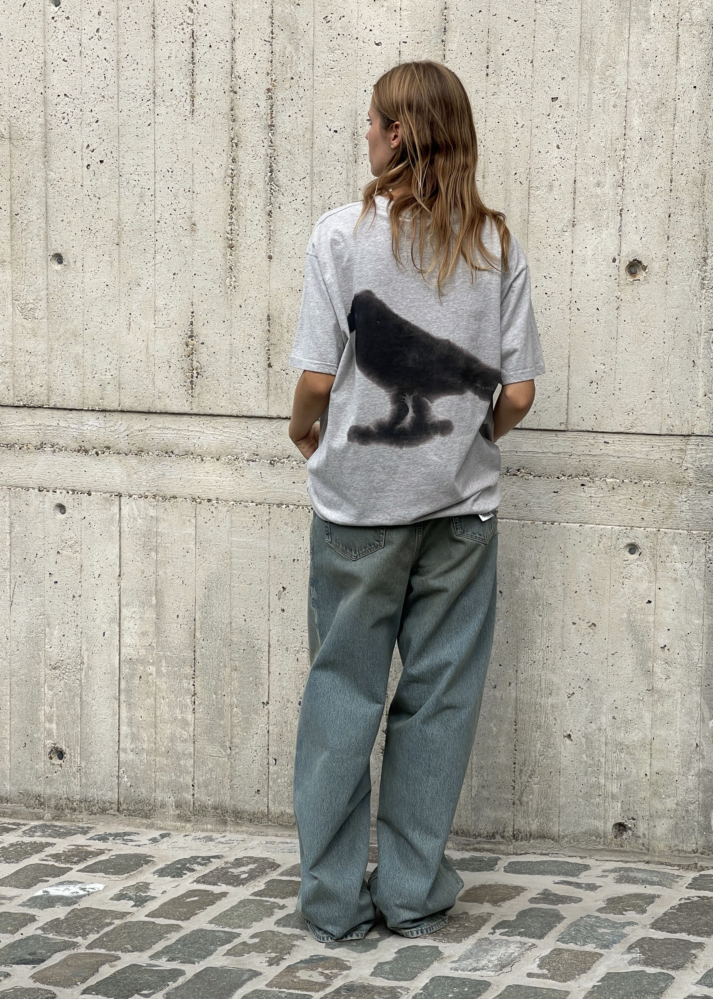 Heather grey unisex T-shirt with a Crow print on the front and back, made from GOTS-certified fabric.