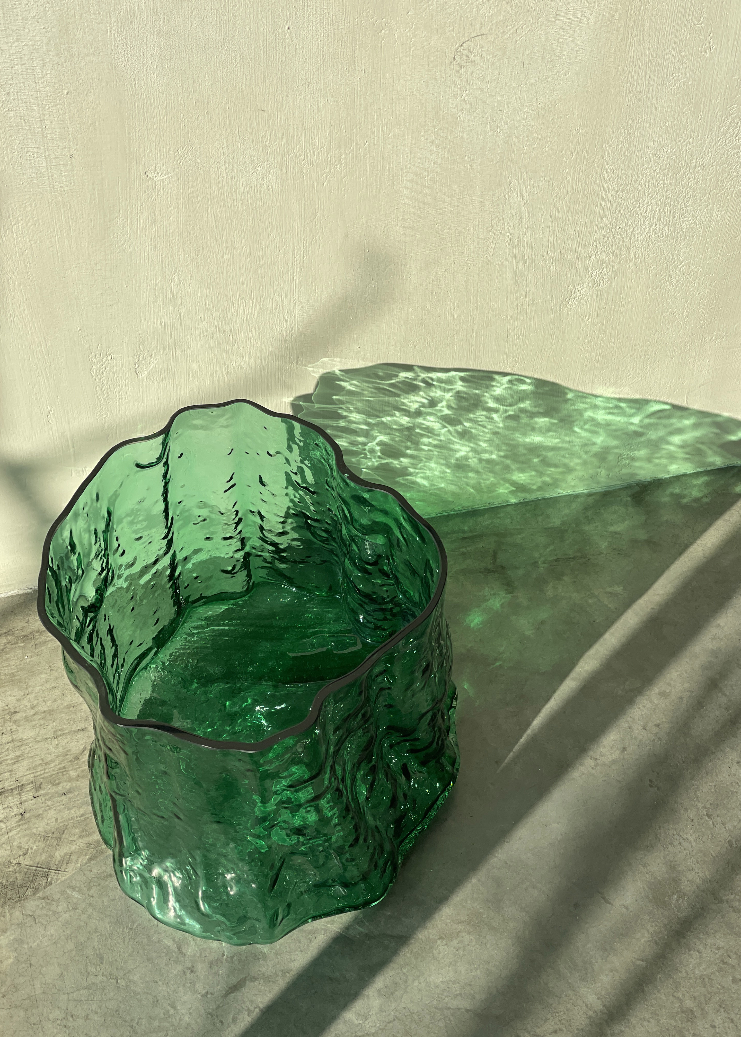 This beautiful vase by Belgian designer Nicolas Erauw is part of an on-going 'Phytotelma' series, where a naturally formed cavity in a piece of nature is being used as a mould. The mould is used to blow glass and eternalize the hole as a phytotelma, literally meaning a water filled cavity in a terrestrial plant.